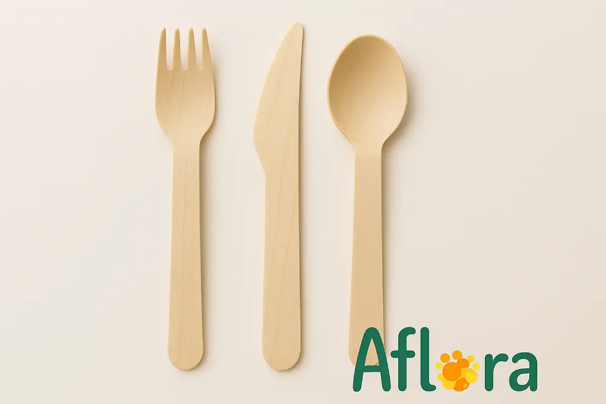 Aflora promueve el uso de productos biodegradables que cumplen con estándares de calidad y sostenibilidad, ofreciendo una línea completa de cubiertos, platos, vasos y empaques compostables.