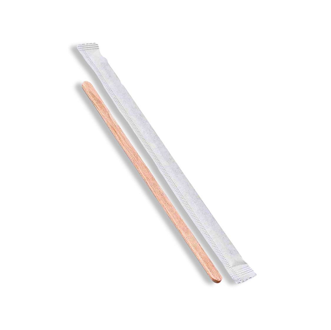 Fabricado con madera de abedul natural, este removedor ofrece una textura suave, alta resistencia al calor y total seguridad para el contacto con alimentos, sin alterar el sabor de la bebida. Cada unidad se encuentra empacada individualmente en papel blanco, garantizando higiene, protección y una presentación profesional.